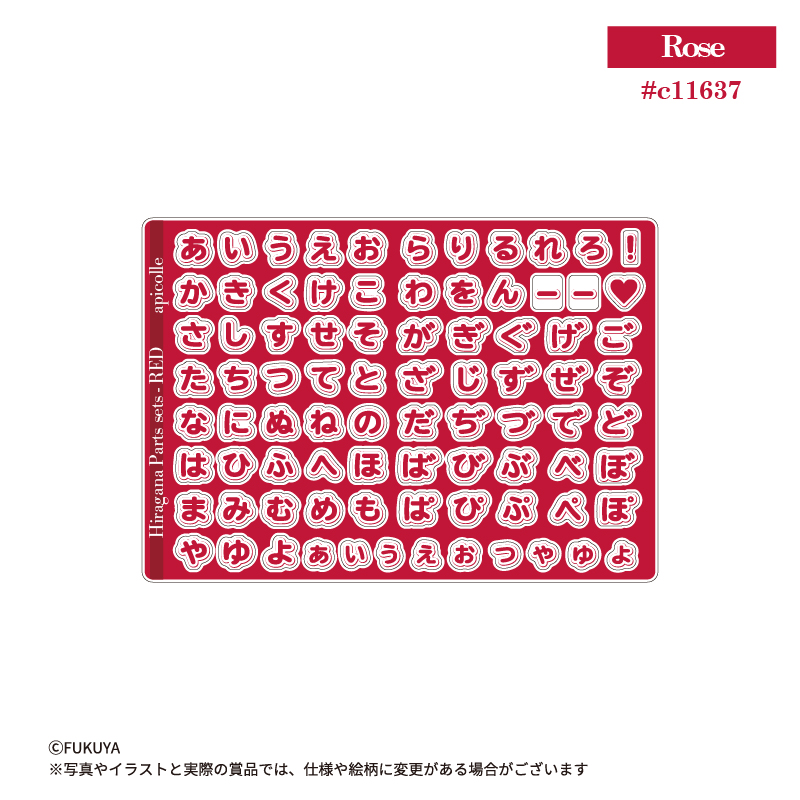「Red」バリエーションのひらがなパーツセット。A賞、D賞のアクリルフレームに入れられます。