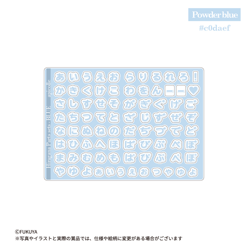 「Blue」バリエーションのひらがなパーツセット。A賞、D賞のアクリルフレームに入れられます。