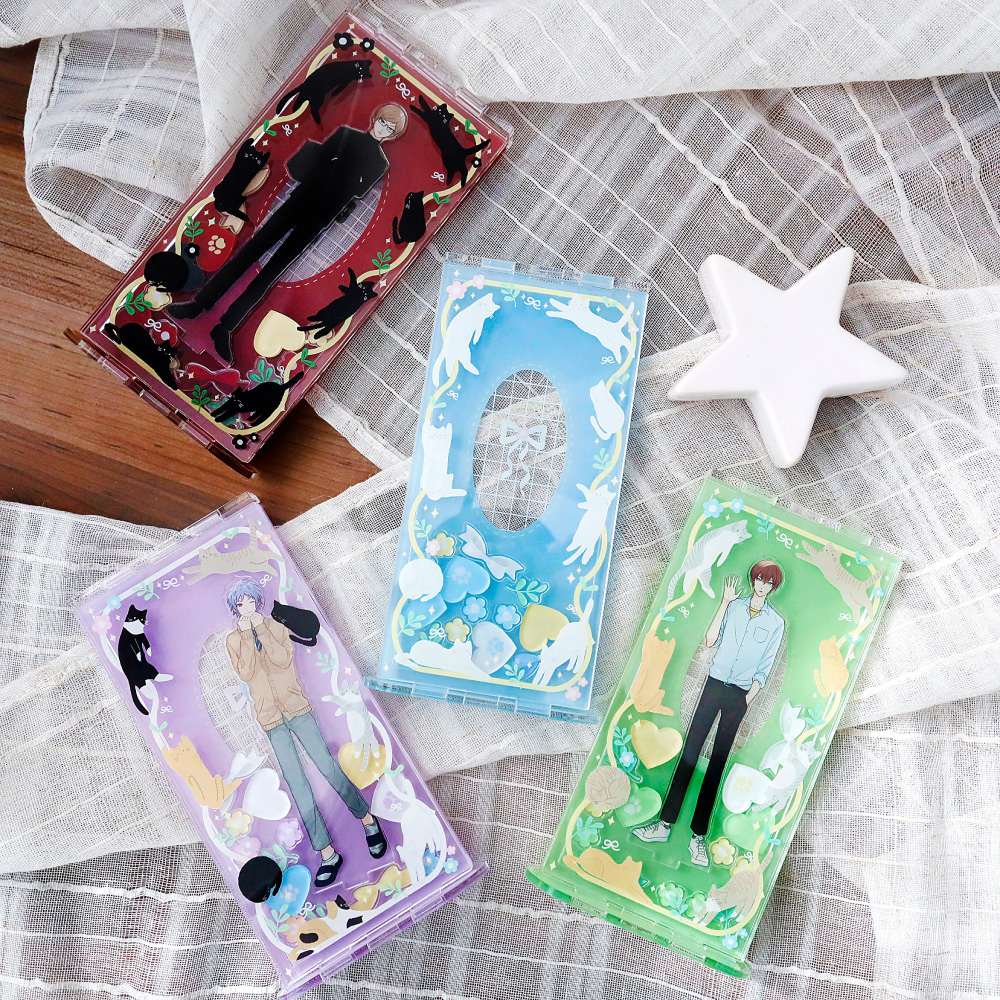 3つのデザインのクリアカード3枚セット。カードグッズと重ねてアクリルフレームに入れたり、硬質カードケースに入れることで、グッズを更に可愛く飾ることが出来ます。