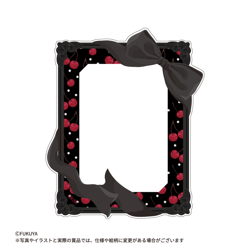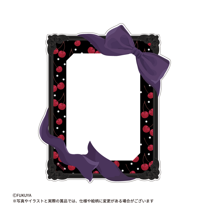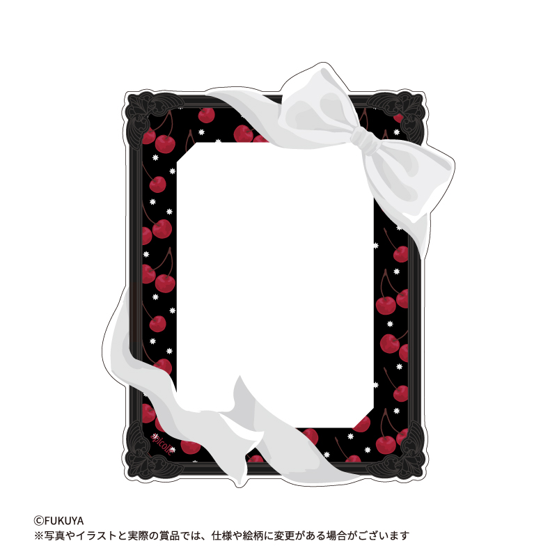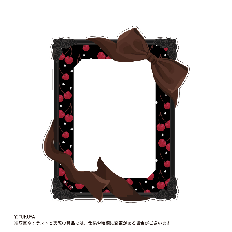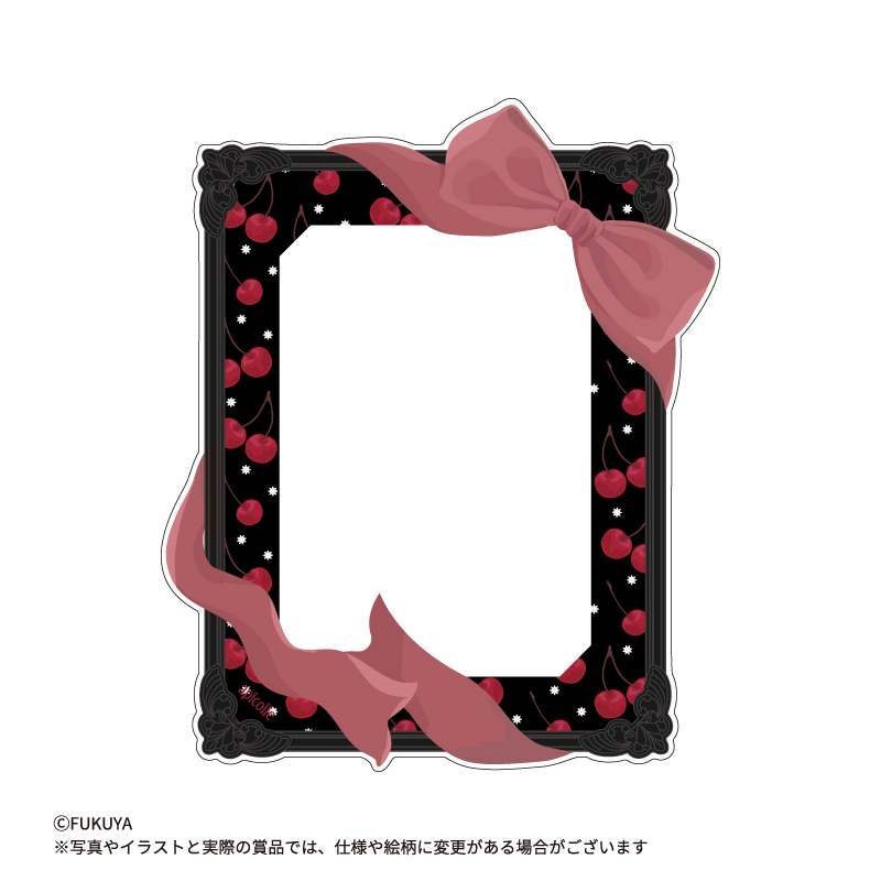 リボンと暗めのチェリーがかわいいアクリルフレームです。