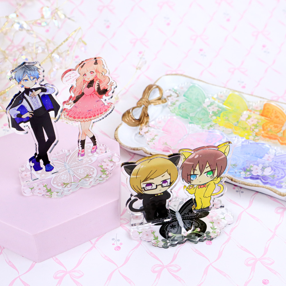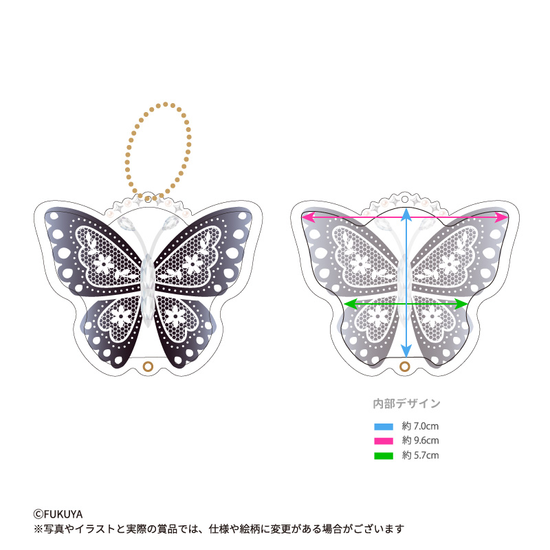 レースデザインのパピヨンアクリルフレーム。ミニキャラアクリルスタンドを入れると、蝶の羽を背中に背負わせられるかわいいデザイン。