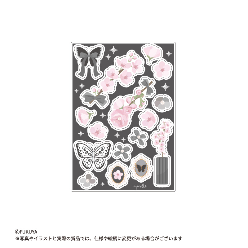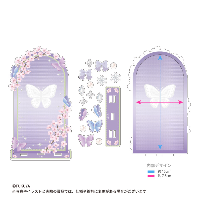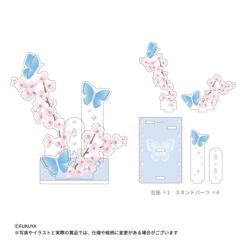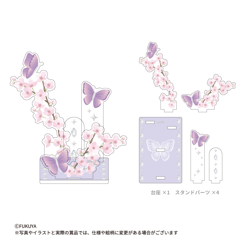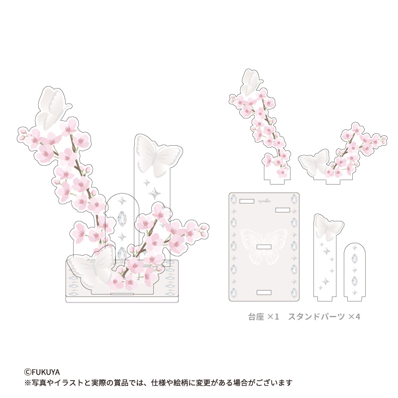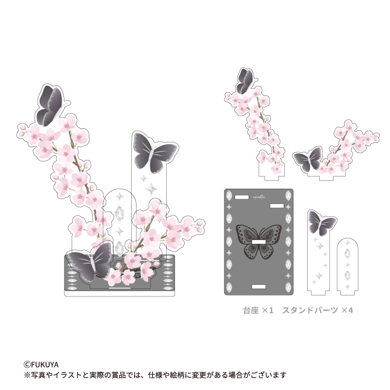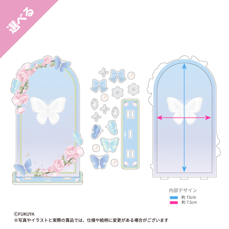 お花やパピヨンモチーフを集めたパーツセット。A賞・B賞のアクリルフレームと組み合わせて使えます。