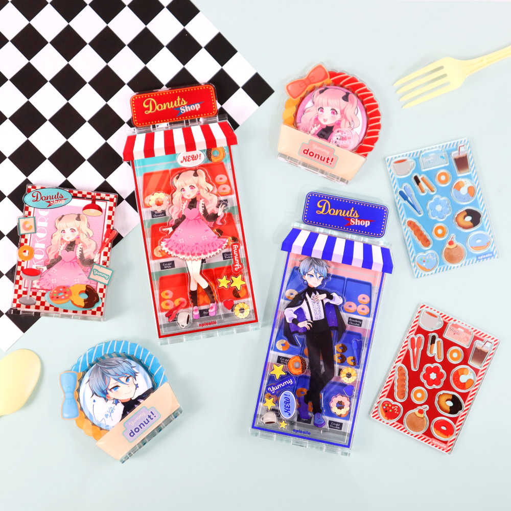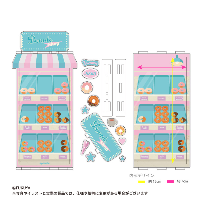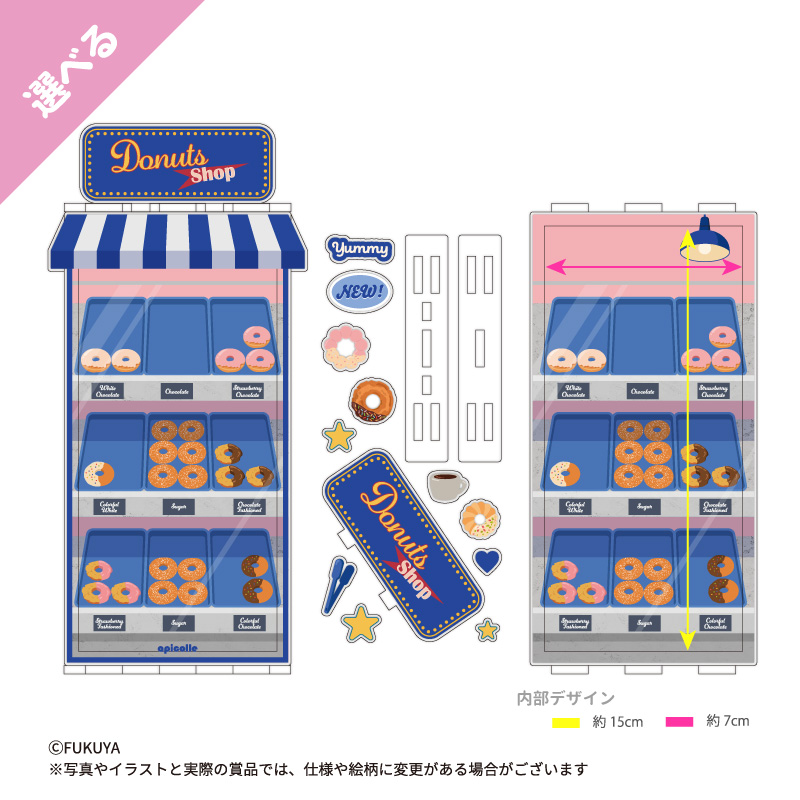ドーナツショップがモチーフのアクリルフレーム。ドーナツを選んでいる様子を演出できるデザイン。看板を差し込んでダイナー風にできます。