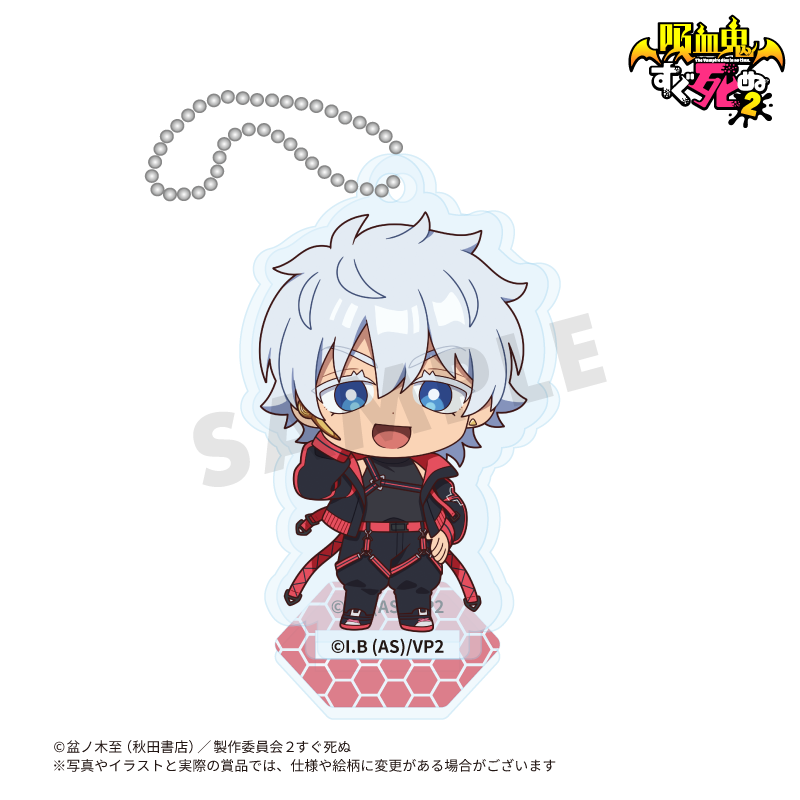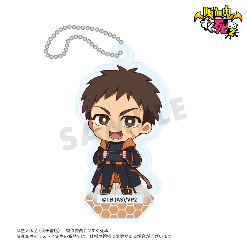 新規描き起こしイラストを使用したアクリルスタンドキーホルダーです。(本体サイズ:H6×W6cm※種類によってサイズは異なります。※全種ボールチェーンが付属します。)