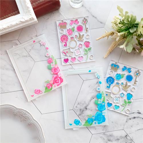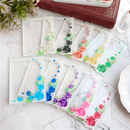 「ペアフォトカードアクリルフレーム カスタムローズ」専用の、1層目カスタム用パーツ板が付属。お好みの2色にカスタマイズが可能です!