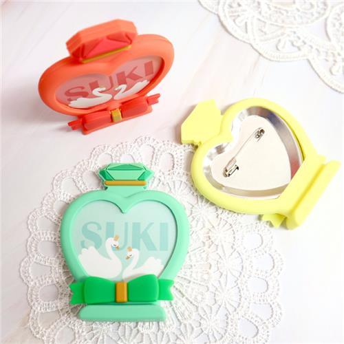 マットな質感がかわいいシリコン素材の缶バッジカバーは、幅Φ57mmのハート缶バッジがぴったり入ります。