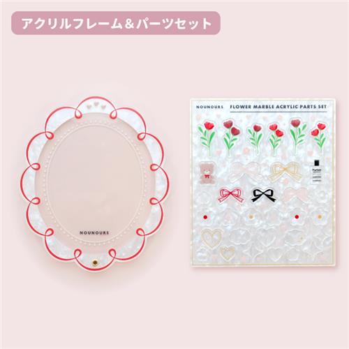 【セット】プレミアムアクリルフレーム フラワーマーブル パールホワイト×レッド