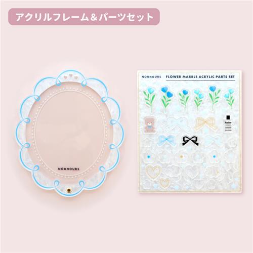 【セット】プレミアムアクリルフレーム フラワーマーブル カードサイズ ミントブルー×グリーン