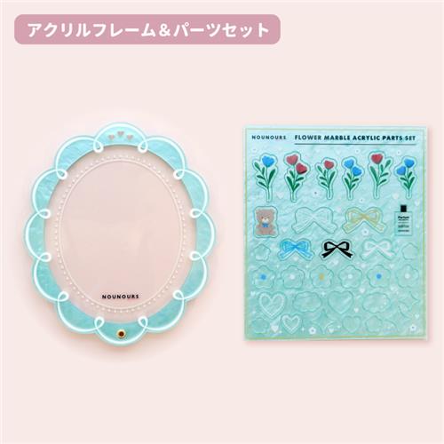 【セット】プレミアムアクリルフレーム フラワーマーブル ミントブルー×ホワイト