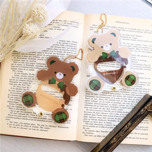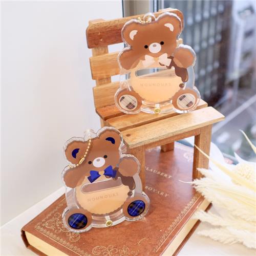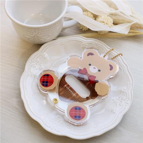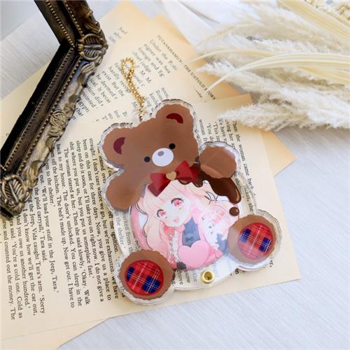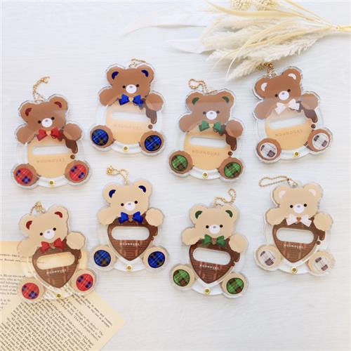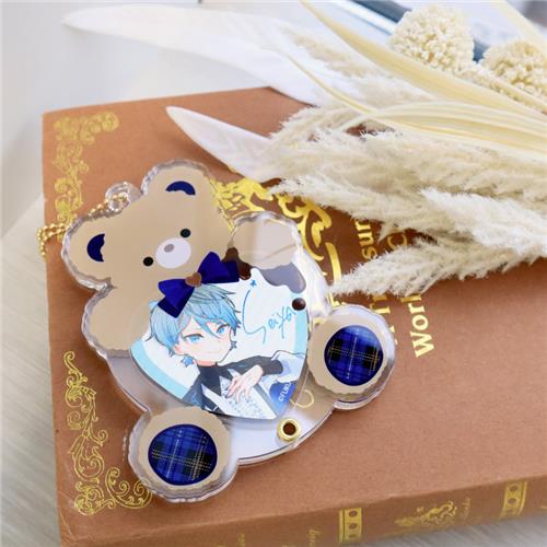 缶バッジを抱えるくまちゃんがかわいいデザイン。