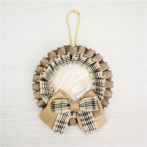 シックな色合いとチェックのリボンがかわいい♪ロゼットをモチーフにした缶バッジホルダーが登場!