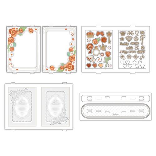 白いクラシカルな額縁に、華やかな薔薇や花々があしらわれたエレガントなデザイン。