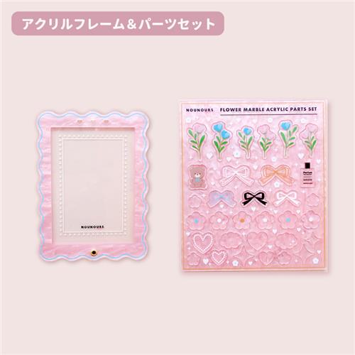 【セット】プレミアムアクリルフレーム フラワーマーブル ミントブルー×イエロー
