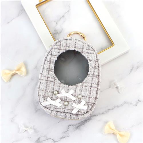 ツイードとリボンの小さめぬい用ポーチ