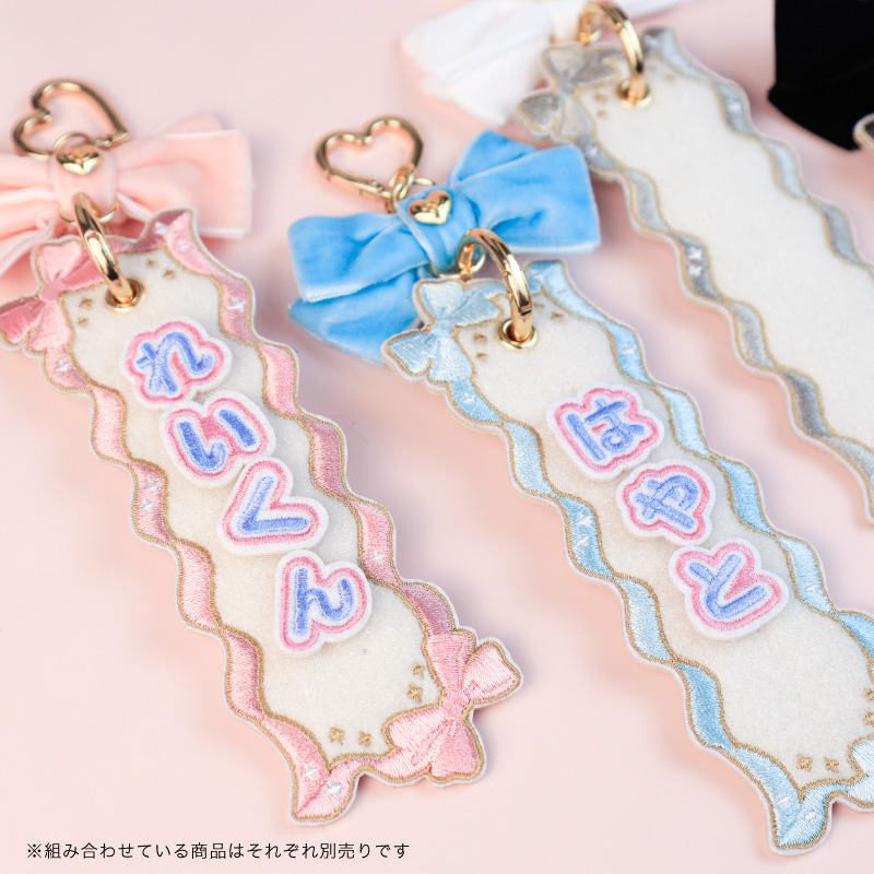 ネームタグとパーツを組み合わせて、作る自分だけのキーホルダー。推しの名前やグループ名、コンビ名、好きな言葉、自分や友達、家族の名前など、様々な表現が楽しめます!