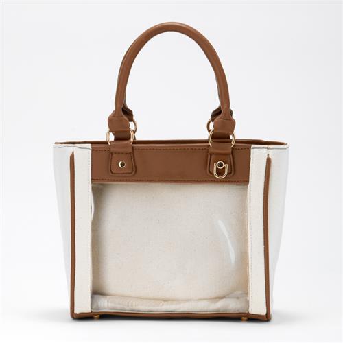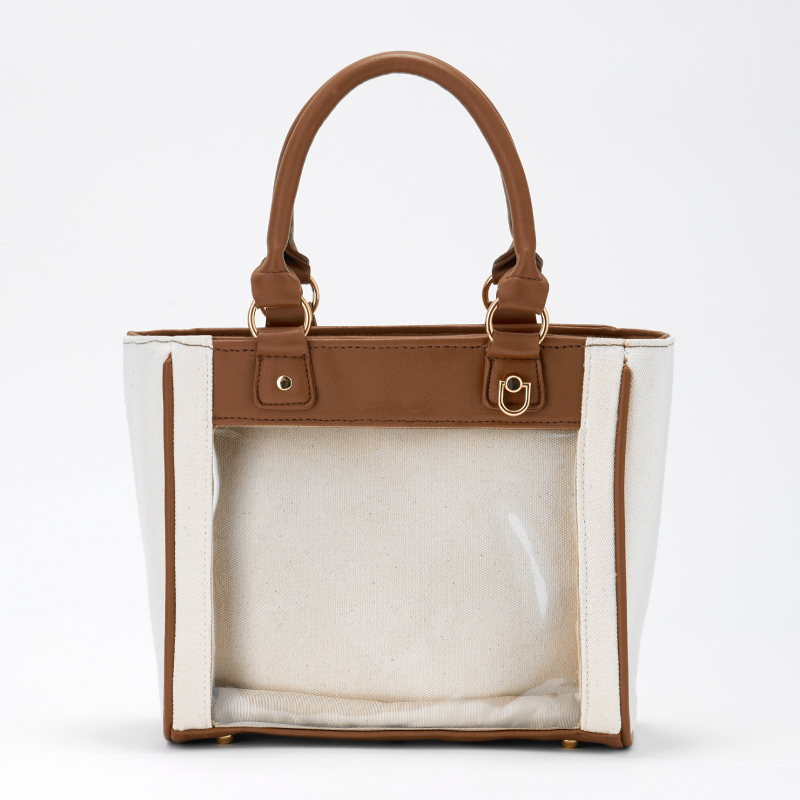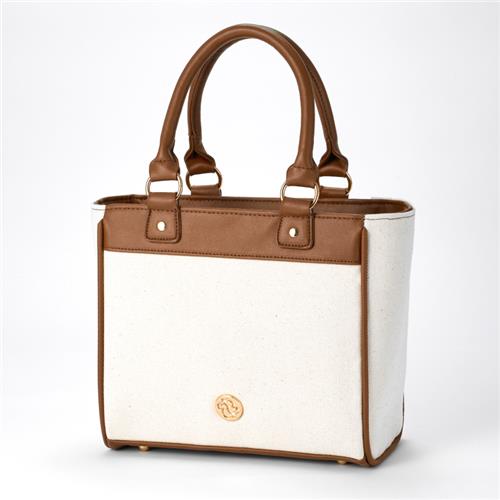 カジュアルな雰囲気にも合わせやすい、合皮+キャンバス生地。