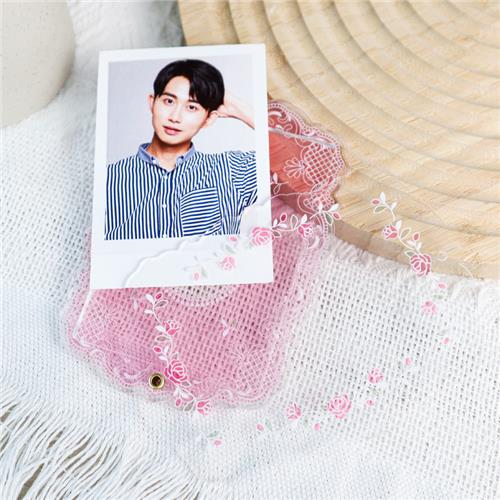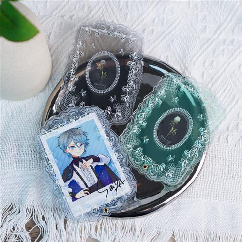 ローズ柄はステンドグラスのような透け感で、中のグッズを華やかに彩ります。