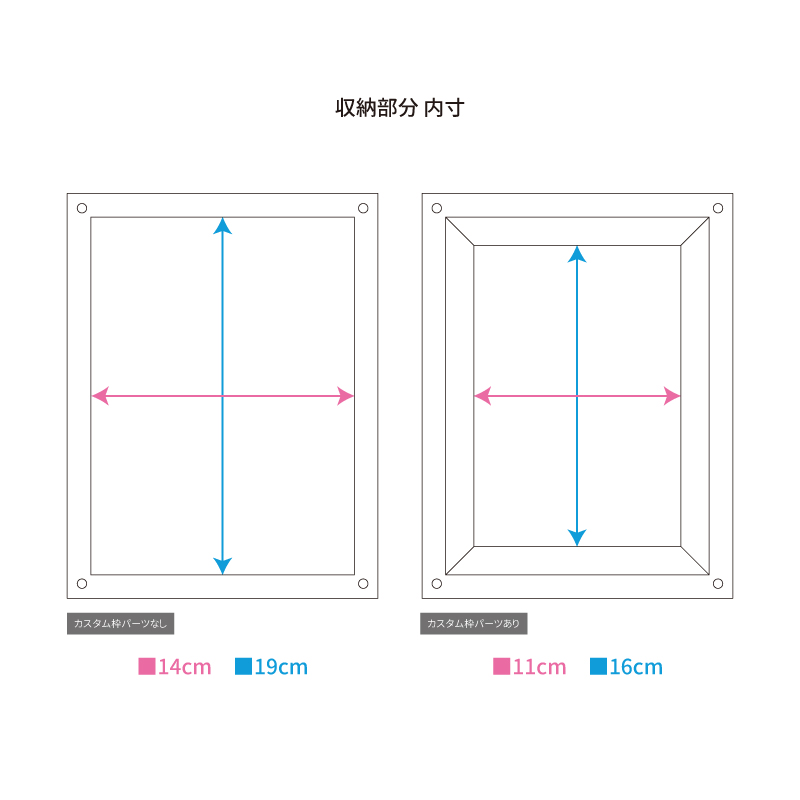 • 中に入れた飾りパーツやお手持ちのアクリルグッズは、アクリルフレーム内で固定はされません。