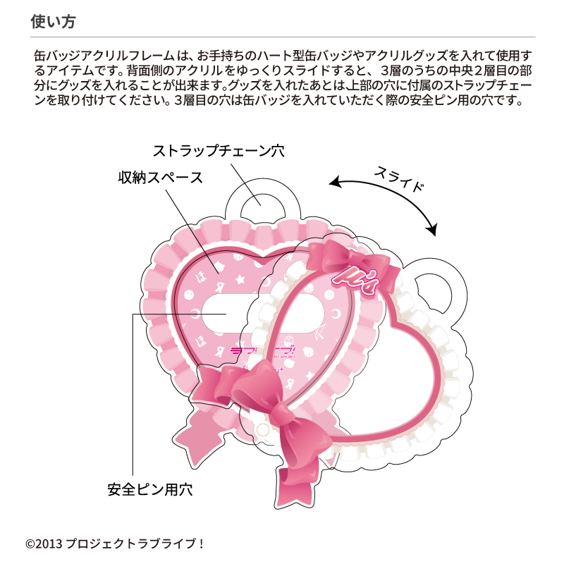 お手持ちのハート缶バッジを入れてお楽しみください。