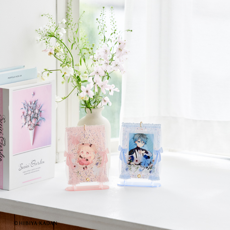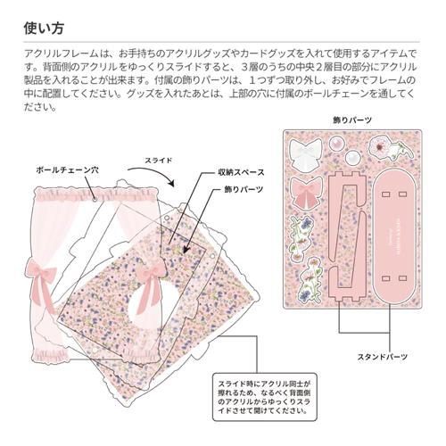 内側のフレーム部分に、アクリルスタンドやカードをセットして飾ることができます。