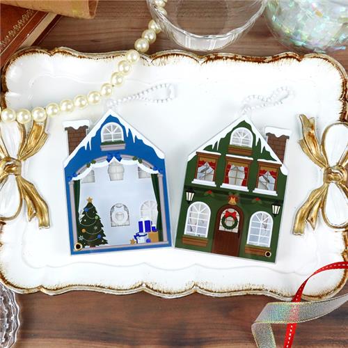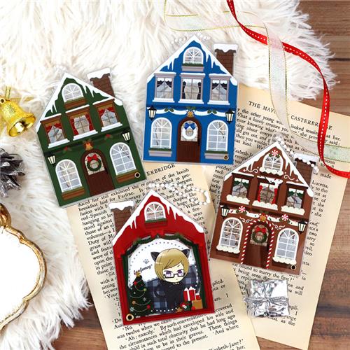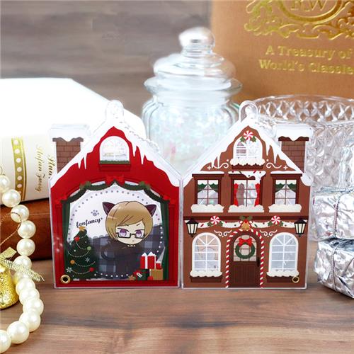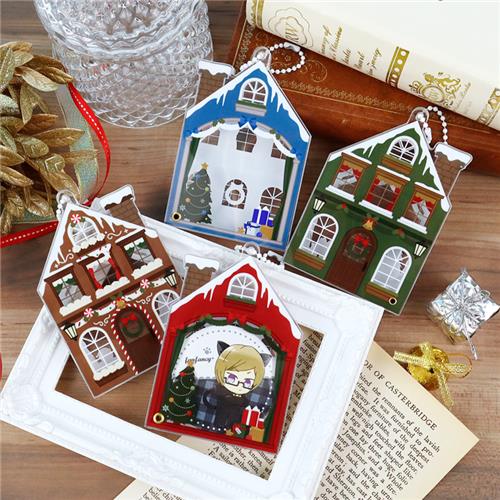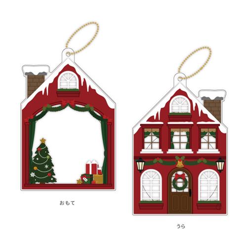 缶バッジアクリルフレーム クリスマスハウス レッド