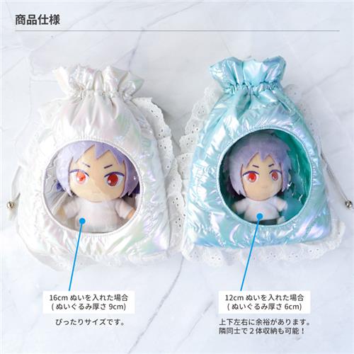 ぬいポーチの内寸は、16cmぬいぐるみがぴったりサイズ。12cmぬいぐるみは横に2体並べることも可能!