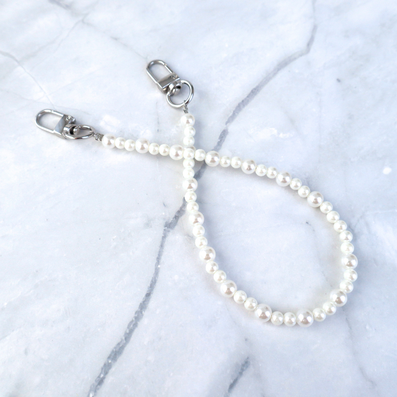 着脱可能なパール調のチェーン付きで、バッグなどにも付けられます。