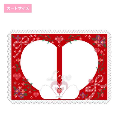 番の白鳥がハートになったデザインと、お花やレース、クロスステッチ風のデザインが華やかにグッズを彩ります。