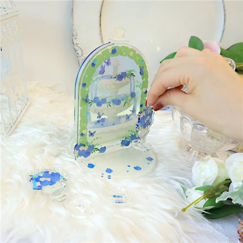 今回のモチーフパーツは台座付き。アクリルフレームの台座のお好みの位置に配置し、オリジナルの庭園を作ることができます!