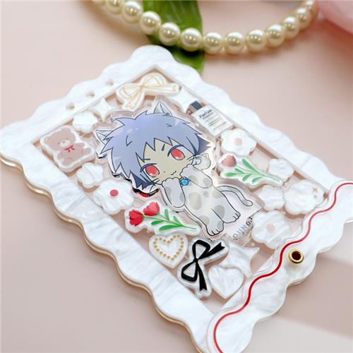プレミアムアクリルフレーム フラワーマーブル カードサイズ パールホワイト×ベージュ