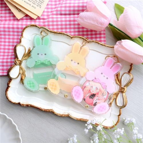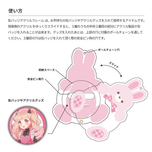 うさぎさんが缶バッジをだっこしてくれる小さなアクリルフレームが登場!