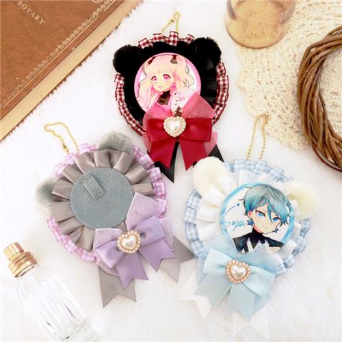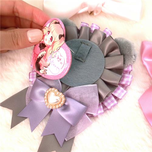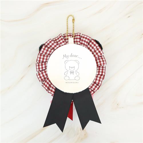 もこもこのくまみみがかわいいチェック柄の缶バッジロゼットが登場!