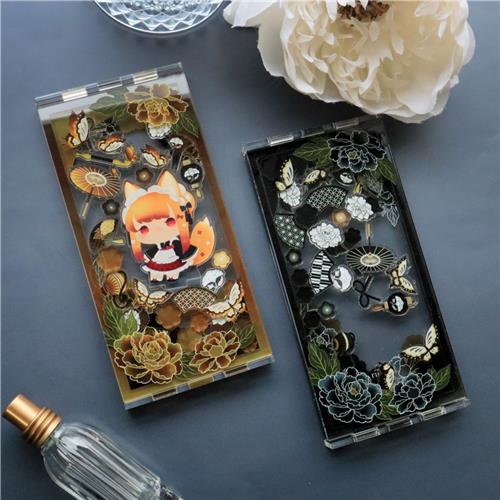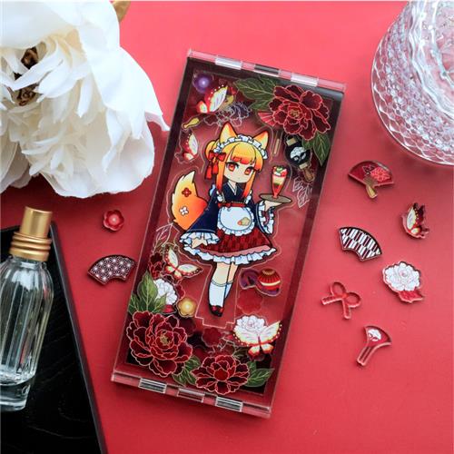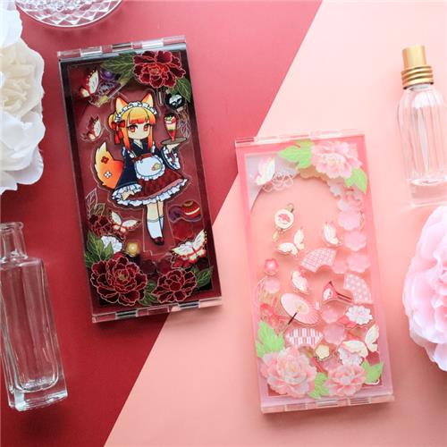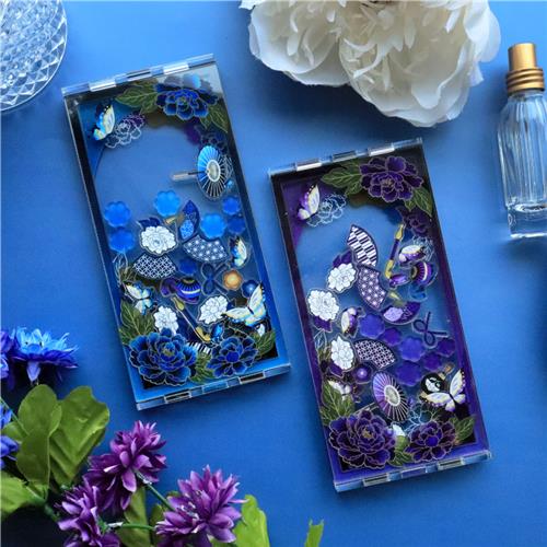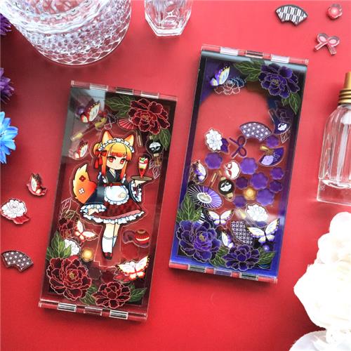 和風の小物に蝶のデザインを加え、アクリルグッズを華やかに演出します。