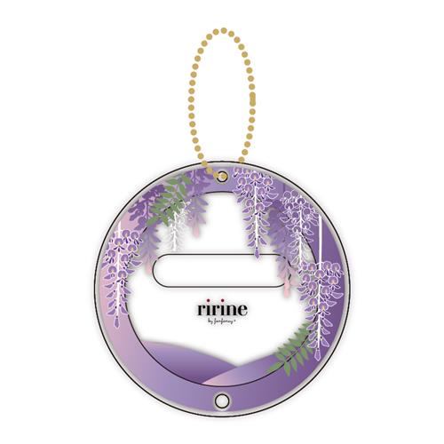 白い繊細なラインアートで描かれた藤を、藤が映える配色と共にデザイン。