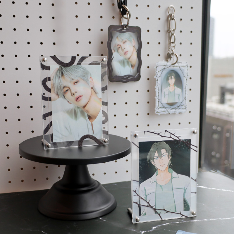 中にブロマイドやカードグッズ、アクリルグッズが飾れるフォトスタンドです。