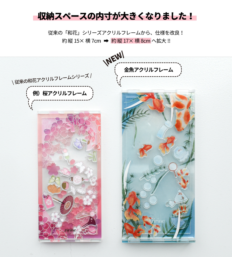金魚アクリルフレーム 金魚アクリルフレーム ririne by fanfancy+から"金魚" を描いたアクリルフレームが新登場! POINT1 金魚や水草を水彩画風にデザイン。透け感のある仕上がりなので、重なったアクリルの層が遠近感を演出します。 POINT2 パーツは金魚鉢や扇子など、どこかノスタルジックな雰囲気のあるモチーフ POINT3 横向きにも飾れるので、ミニキャラグッズもぴったり! ###UserCustomPage(campaignSubTitle)### 対象商品はこちら すぐお届け商品 店舗取扱い商品 ririne by fanfancy+ 金魚アクリルフレーム 朝 販売価格¥2,750 すぐお届け商品 店舗取扱い商品 ririne by fanfancy+ 金魚アクリルフレーム 夜 販売価格¥2,750 ブックマークに追加 フォルダ名 に 追加 キャンセル ブックマークに追加しました ブックマーク一覧に移動 閉じる カートに入れました カートを見る 閉じる VIEW ALL VIEW ALL