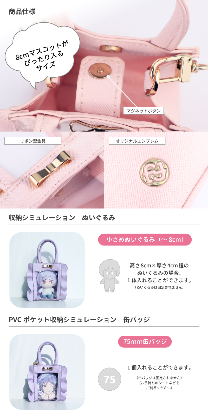 パレットリリーマイクロバッグ パレットリリーマイクロバッグ パレットリリーシリーズに手の平サイズの痛バが新登場!ぬいぐるみやフィギュア、トレカなど小さなグッズを連れてのお出かけに便利なアイテムです♪【11/15日(土)10:00~販売開始】fanfancy+ with GiGO各店でも同時発売!取扱店舗一覧はこちら POINT1 左右にフリルを施したパレットリリーのデザインはそのままに小さいグッズを入れてかわいい、手の平サイズのバッグです♪ POINT2 缶バッジはもちろん、8cmサイズのぬいぐるみにピッタリのサイズ感です◎ POINT3 チャームとしてバッグに付けても、お手持ちのショルダー紐を付けてもお使いいただけます。ミニコスメや、カプセルトイを入れるのもおすすめです♪ PRESENT CAMPAIGN 先着で「ショルダーチェーン」プレゼント! マイクロバッグをご購入のお客様に 先着でマイクロバッグを身に着けて使える「ショルダーチェーン」をプレゼントいたします。 ※なくなり次第終了となります。※対象商品ご購入1個につき1点付属いたします。 対象商品はこちら すぐお届け商品 店舗取扱い商品 fanfancy+ パレットリリーマイクロバッグ レッド 販売価格¥3,080 カートへ追加 すぐお届け商品 店舗取扱い商品 fanfancy+ パレットリリーマイクロバッグ ピンク 販売価格¥3,080 カートへ追加 すぐお届け商品 店舗取扱い商品 fanfancy+ パレットリリーマイクロバッグ パープル 販売価格¥3,080 カートへ追加 すぐお届け商品 店舗取扱い商品 fanfancy+ パレットリリーマイクロバッグ ブルー 販売価格¥3,080 カートへ追加 すぐお届け商品 店舗取扱い商品 fanfancy+ パレットリリーマイクロバッグ グリーン 販売価格¥3,080 カートへ追加 すぐお届け商品 店舗取扱い商品 fanfancy+ パレットリリーマイクロバッグ イエロー 販売価格¥3,080 カートへ追加 ブックマークに追加 フォルダ名 に 追加 キャンセル ブックマークに追加しました ブックマーク一覧に移動 閉じる カートに入れました カートを見る 閉じる VIEW ALL VIEW ALL