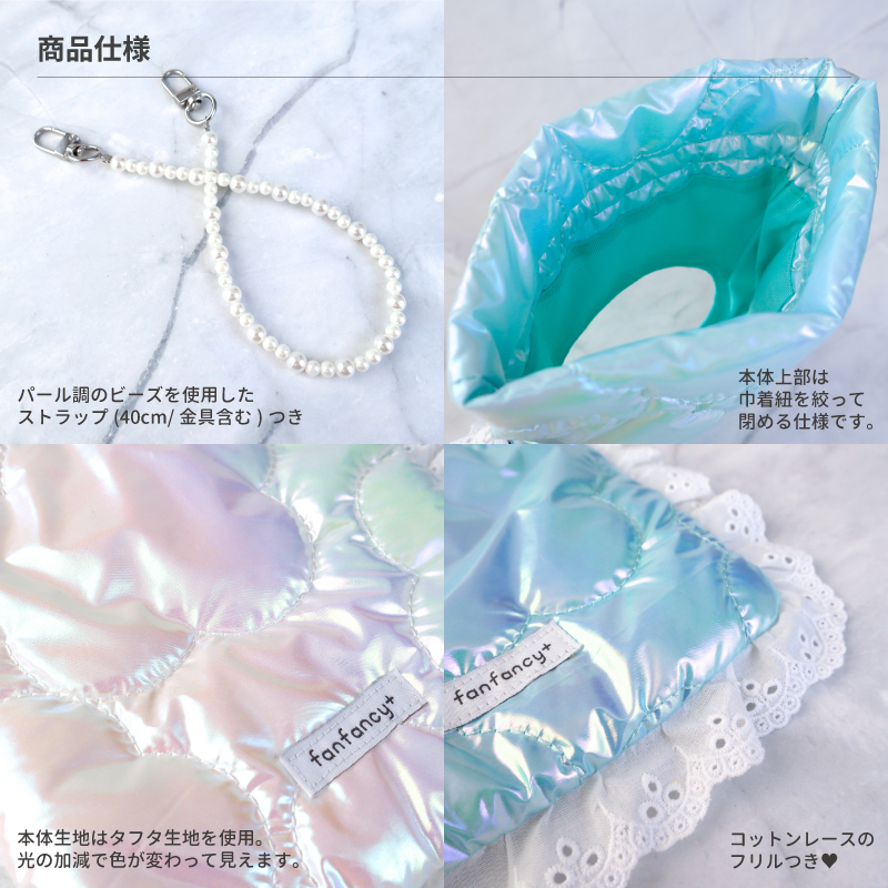 パールキルティングぬい巾着 冬をイメージした、パールのようにきらきら光るぬい巾着が登場!見せて持ち歩くのはもちろん、ぬいの持ち運びにも便利なぬいポーチです。 POINT1 大きめ16cmぬいがぴったりサイズ。12cmぬいなら並べて入ります♪ POINT2 取り外し可能なパール調のチェーンつき!バッグに取り付けても、お手持ちのショルダーなどにつけかえてもかわいいです。 POINT3 光の加減できらきら色が変わる、タフタ生地を使用。 対象商品はこちら 予約商品 2025年12月下旬から順次発送 店舗取扱い商品 fanfancy+ パールキルティングぬい巾着 ホワイト 販売価格¥2,750 この商品は12月17日18時0分から販売スタートです! 予約商品 2025年12月下旬から順次発送 店舗取扱い商品 fanfancy+ パールキルティングぬい巾着 ブルー 販売価格¥2,750 この商品は12月17日18時0分から販売スタートです! ブックマークに追加 フォルダ名 に 追加 キャンセル ブックマークに追加しました ブックマーク一覧に移動 閉じる カートに入れました カートを見る 閉じる VIEW ALL VIEW ALL